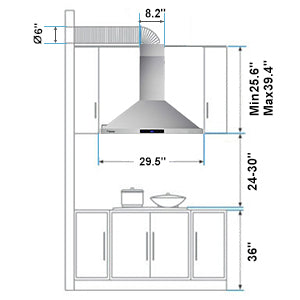 Step 4: This kitchen hood is 35.2 inch wide, if you install the unit into existing cabinet, please make sure the distance between both sides should be not less than 36 inch.